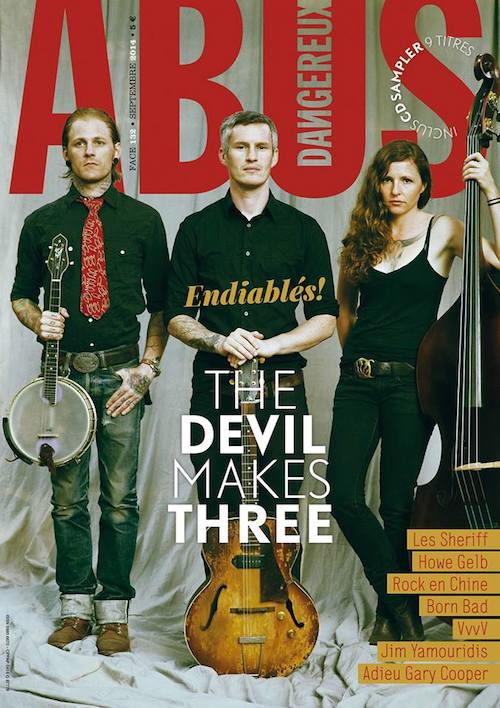 – Abus Dangereux face 132 (août 2014) : j’y ai fait les interviews de The Devil Makes Three (en couverture) et VvvV, ainsi que deux ou trois autres petits trucs.