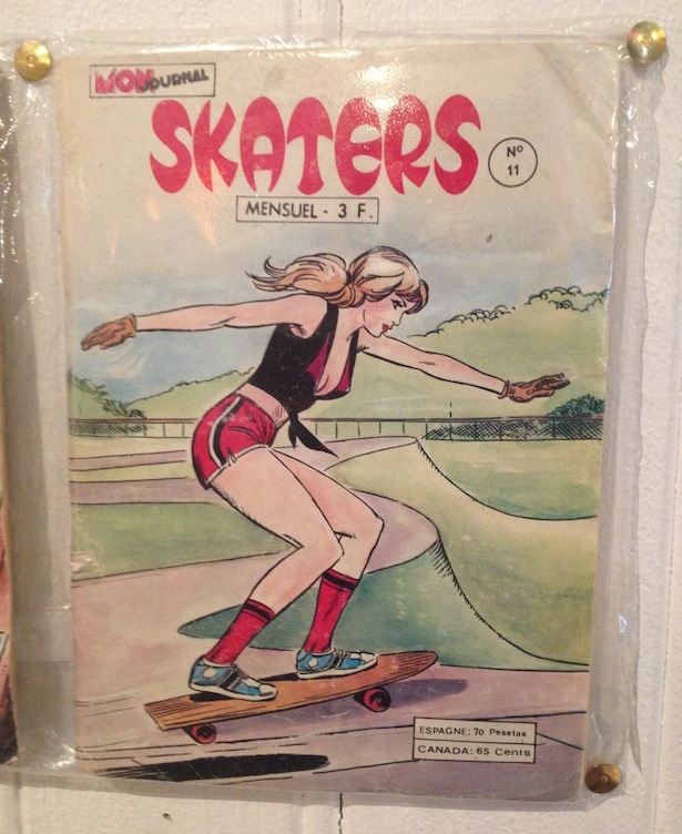 J’ai enfin vu l’expo « Skatexploitation » – accrochée sur les murs du disquaire Total Heaven. C’est une expo DIY, conçue par le collectionneur fou David P., spécialiste de la culture populaire underground et responsable des Editions Imagora. Ceux qui le connaissent savent à quel point c’est un sacré personnage.