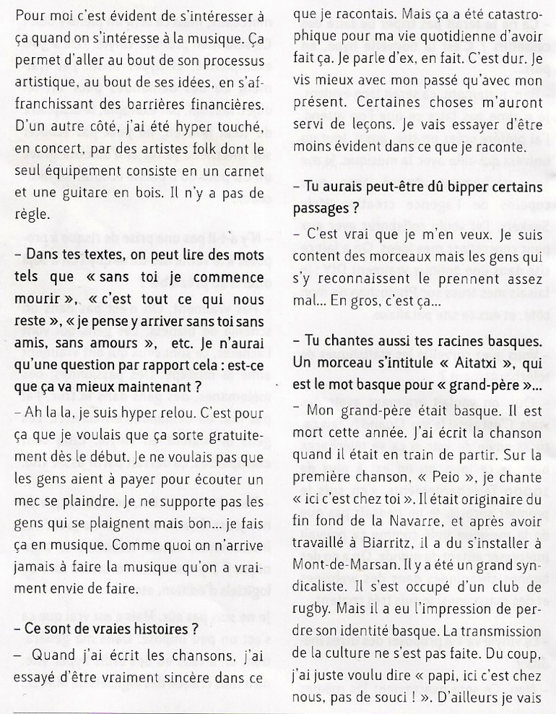 Bio express : originaire de Mont-de-Marsan, installé à Bordeaux, a fréquenté La Sonnette (ex-Transmission, rue Courbin) avec Les Malicieux, puis a beaucoup fréquenté l’Inca, membre du collectif Iceberg, membre du trio hop hop Le Pingouin, membre des Crane Angels (qu’il a dû quitter faute de temps libre), et actuellement membre à plein temps du groupe François & The Atlas Mountains.
