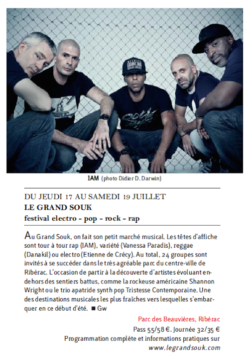Quelques papiers que j’ai faits pour annoncer le festival Le Grand Souk (Ribérac, Dordogne, du 17 au 19 juillet).