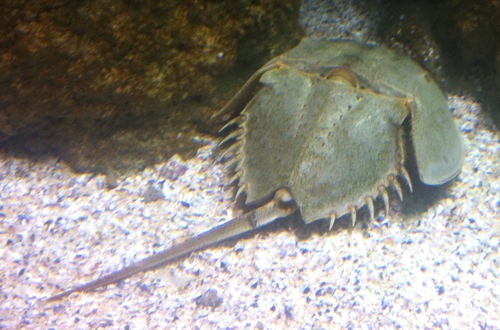 Je vais être franc, je ne connaissais pas du tout ce truc. Une sorte d’hybride de cloporte, de sole en train de s’accoupler avec une tortue, et de machine de guerre de Warhammer. Le gars que j’avais vu balancer des morceaux de maquereaux directement dans la gueule des phoques quelques instants plus tôt passant par là, je l’ai interpellé sur la question et il m’a fait un petit topo sur le « limule ». En France, on ne le trouve plus, à l’état naturel, que dans une seule calanque du côté de Marseille. Au Japon, c’est un mets de choix, ce qui le met en situation d’espèce en voie de disparition. Animal préhistorique, le limule a la caractéristique d’avoir le sang bleu. Sur Wikipédia, vous trouverez son CV sous le petit nom sympa de xiphosura.