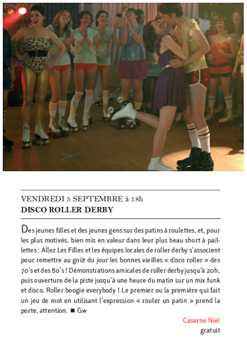Vendredi 5 septembre 2014, l’association Allez Les Filles organise une soirée Disco Roller Derby à la Caserne Niel, à Bordeaux.