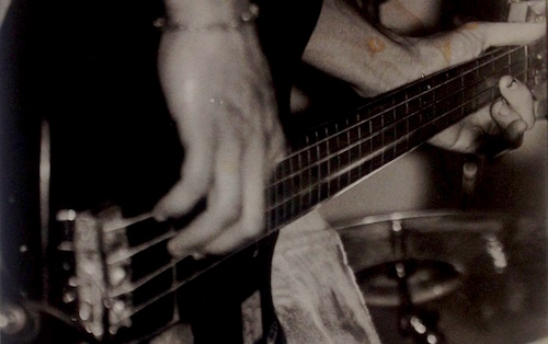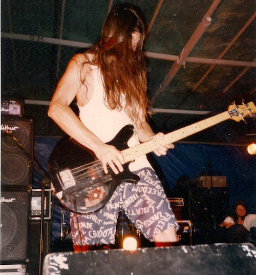 Photo : Belly Button (Fred) en concert à Castelfranc (Lot), il y a pile vingt ans. Je suis stage manager et on me voit dans le coin (à cour, comme on dit) , grunge parmi les grunges.
