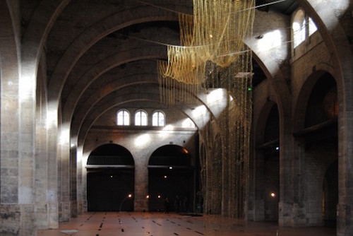 « Les interventions spatiales de Leonor Antunes s’inscrivent dans une démarche singulière s’appuyant sur des dispositifs permettant de générer, par leur seule présence, de nouvelles relations entre l’oeuvre et l’architecture », ai-je lu dans la note d’intention, sans vraiment piger de quoi il est question ? Des trois paravents ? De la corde qui supporte le grand rideaux aux mailles dorées ? Une visite à réserver sans doute aux premiers de la classe que les parents avaient obligés à prendre l’option post-minimalisme pour twister la carte scolaire.