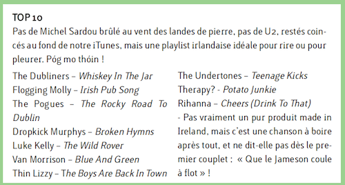 Pour le numéro de mars 2016 de Clubs Et Concerts, j’ai fait trois pages spéciales Saint-Patrick. Un grand classique, mais un grand classique que j’aime bien. C’est ce jeudi 17 mars, hein.