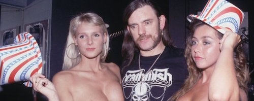 La photo de Lemmy Kilmister avec les deux meufs tout droit sorties de la page 3 du Sun est extraite d’une fameuse série de Mark Baker pour le label Sony – ici tronquée par nécessaire pudeur.