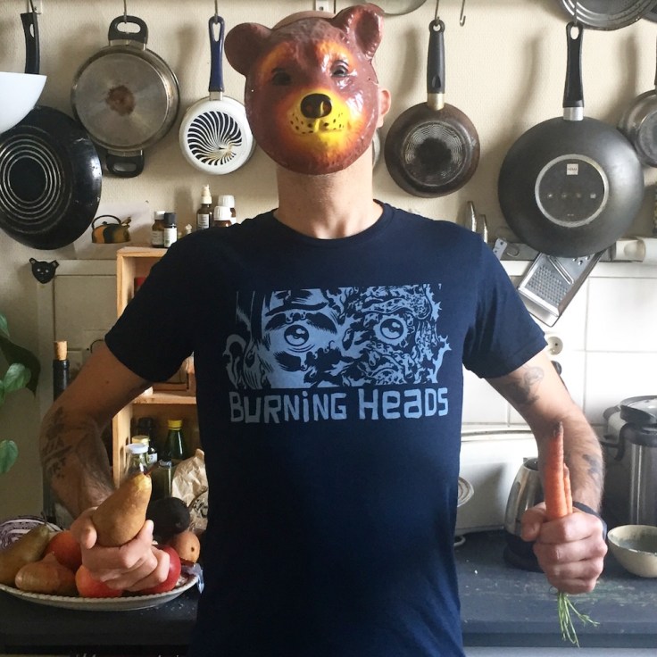 Nouveau design de T-shirt pour les Burning Heads, comme nous le montre ci-dessus cet ours végétarien, avec motif comic books à l’américaine. Puissante illustration signée Freak City et un lettrage parfaitement adapté. L’accessoire textile indispensable pour vos activités indoor et outdoor.