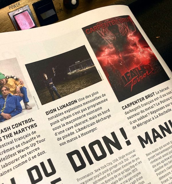 Depuis 2017, il défend sur scène ses deux albums solo. Le dernier en date, « Beyond Everything », est sorti sur le mieux nommé des labels : In The Red Records (Jay Reatard, Jon Spencer, The Spits, King Khan, The Oh Sees, etc.). Les aiguilles du vu-mètre dans le rouge, voilà qui va comme un gant de cuir au prolifique et dynamique Dion Lunadon, guitares saturée, vocaux époumonnés, les récepteurs dopaminergiques au maximum de l’activation de leur processus neurologique, toujours partant pour faire surgir l’authenticité du rock’n’roll de derrière les hauts parleurs d’un frigo Fender et à prêcher in vivo la philosophie qui a toujours été celle de cette musique : la croyance éperdue en ses instincts, et la célébration spasmodique de la luxure ou toutes autres façons d’être tenté par le diable.