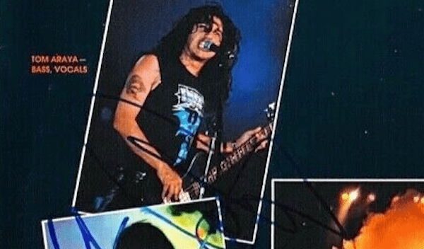 Modèle : Tom Araya (Slayer), au dos de la pochette de l’album Hell Awaits (sorti en septembre 1985)