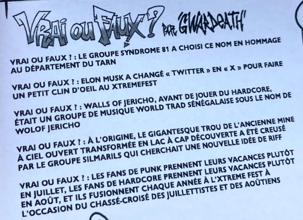 Je suis revenu en (quasi) pleine forme de ma mission au Xtreme Fest (du 28 au 30 juillet 2023) pour prendre quelques notes, checker les bons gars, les bonnes meufs, les bons stands et les bons bands !