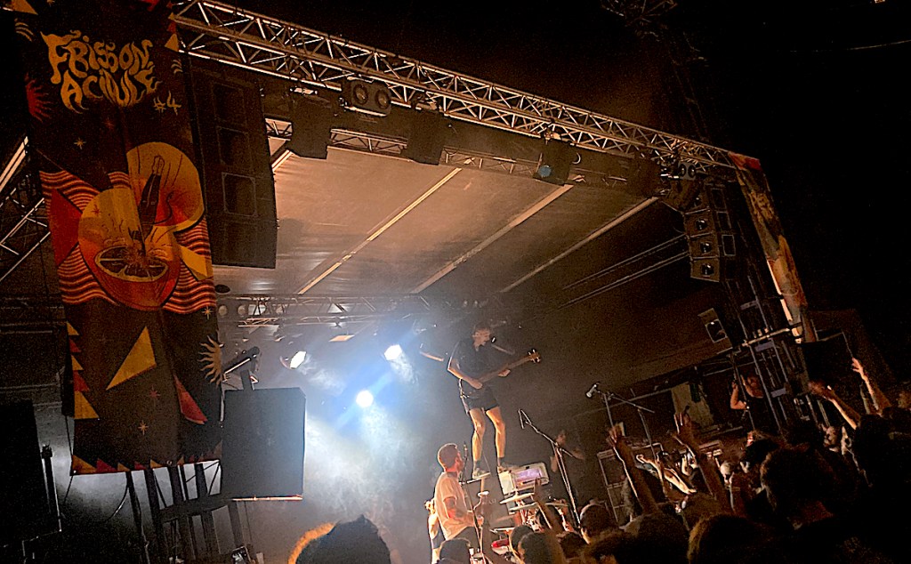 C’était cool de venir. On salue l’initiative. On a bien fureté dans les stands. J’ai acheté toutes les cassettes que La Jungle avait à vendre (à un prix variable de 7,5 € à 10 € l’unité selon que l’on s’adresse au batteur ou au guitariste, d’ailleurs : choisis ton technico-commercial). On a mangé de délicieuses frites surgelées vegan. J’espère que le bilan financier permettra aux organisateurs de repartir sur une prochaine édition nickel dans deux ans (Frisson Acidulé est une biennale, si je ne me trompe pas), quand Valérie Pécresse aura fini de creuser tous ses tunnels et de planter tous les arbres le long des pistes cyclables.