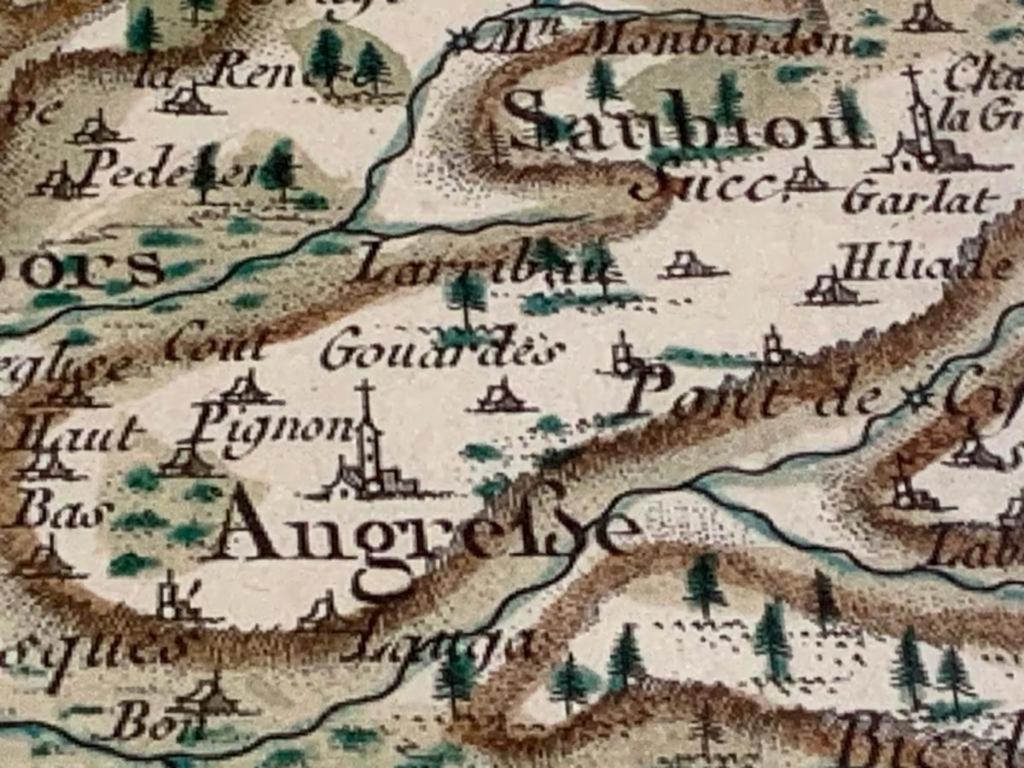 Comme monsieur Duplantier avait mentionné la carte Cassini dans la conversation, je suis allé la consulter en ligne sur le site de la Bibliothèque nationale de France. En zoomant un peu au nord de Ondres, j’ai eu droit à une sacrée surprise, en voyant, pour la première fois, le nom de famille surgir du passé. Mon arbre généalogique situe mes ancêtres paternels dans le coin, entre Tosse, Saubion, Ondres et le Boucau… mais pour la première fois j’ai pu voir un lieu-dit (au centre sur la vignette ci-dessous, très certainement une ferme) indiquer le nom que je porte !