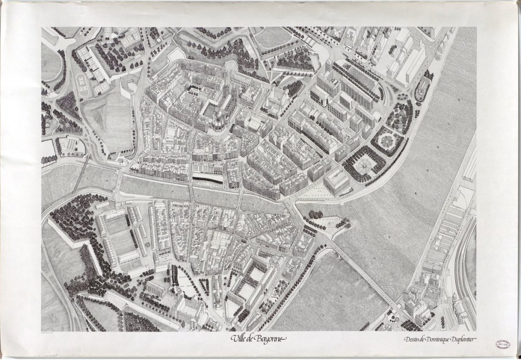 Je me suis donc lancé dans cette entreprise, créant ainsi mon premier plan axonométrique. Il eut beaucoup de succès à Bordeaux. Il a été publié, reproduit sur des panneaux.. Il y en a eu partout ! A l’époque, je tirais le diable par la queue, et me suis dit en conséquence qu’il y avait une idée à creuser. Je me suis posé la question : que pourrais-je dessiner que je pourrais vendre aux Bayonnais ? Bien sûr, le plan de Bayonne !