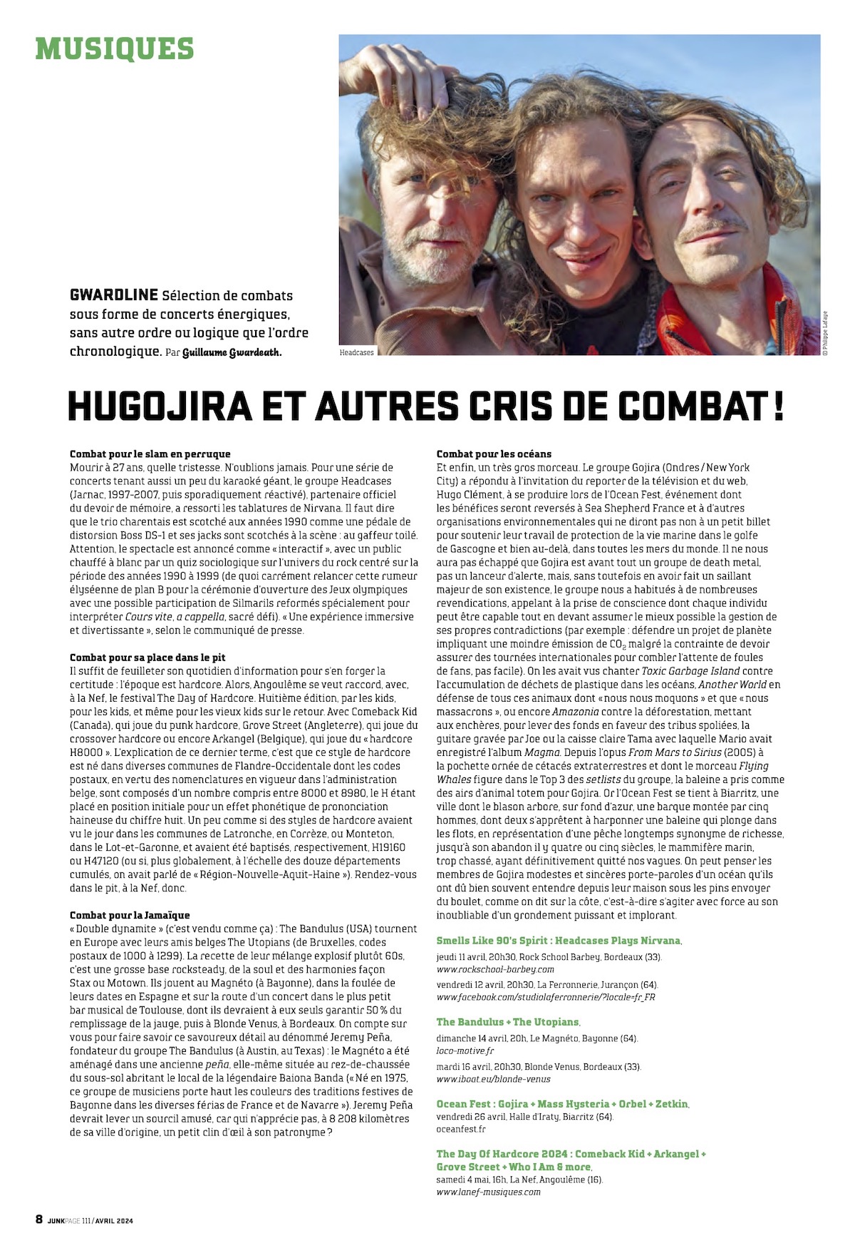 Texte : Guillaume Gwardeath (d’après un extrait de la sélection mensuelle « Gwardline » parue dans le journal Junkpage n°111 du mois d’avril 2024)